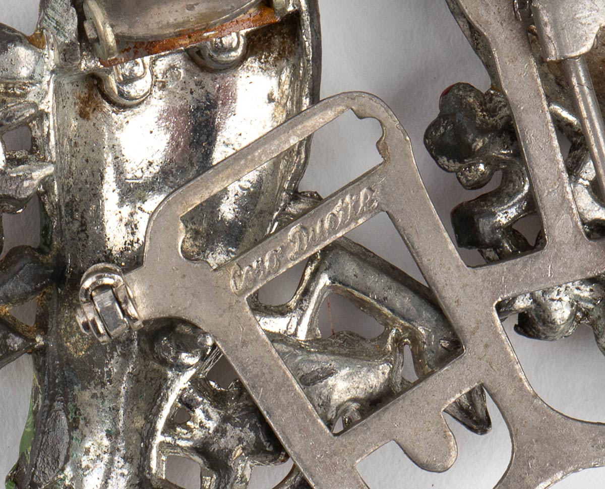 SPILLA IN METALLO ARGENTATO E SMALTI