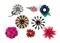 Lotto di 8 spille a forma di fiore in metallo smaltato multicolore e strass