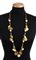 Collana in metallo dorato perle finte e ciondoli a moneta di differenti dimensioni