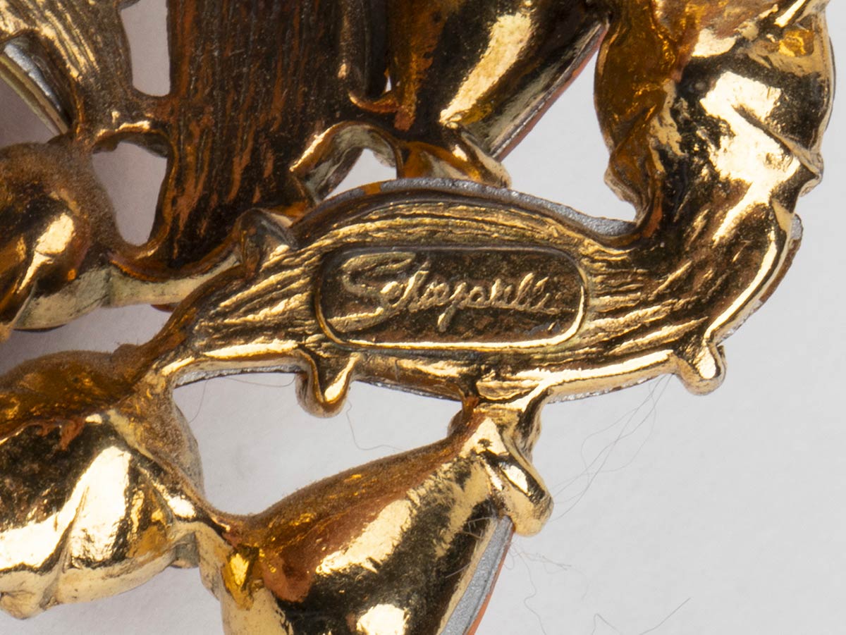 SCHIAPARELLI<br>SPILLA IN METALLO DORATO<br>Anni 60