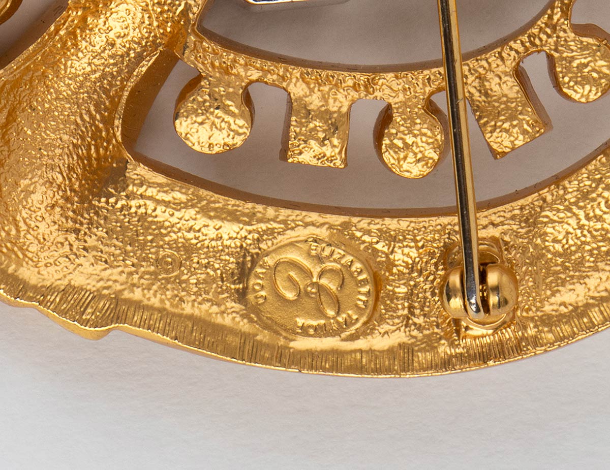ELIZABETH TAYLOR FOR AVON<br>SPILLA IN METALLO DORATO<br>Fine anni 80 / Inizio anni 90