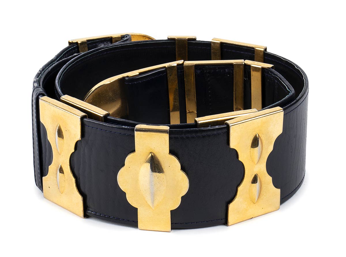 ROBERTA DI CAMERINO<br>CINTURA IN PELLE E METALLO DORATO<br>Metà anni 70