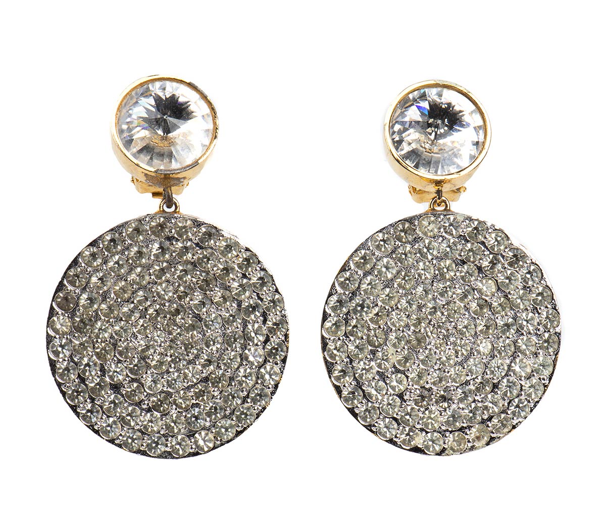 VALENTINO <br>ORECCHINI CLIP IN METALLO DORATO CON STRASS<br>Fine anni 80