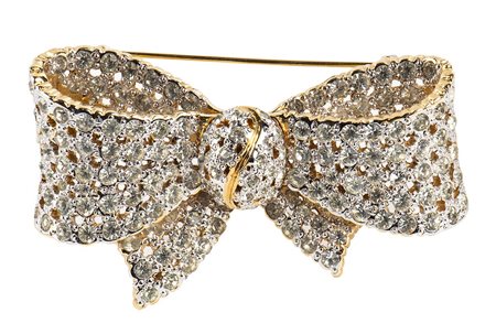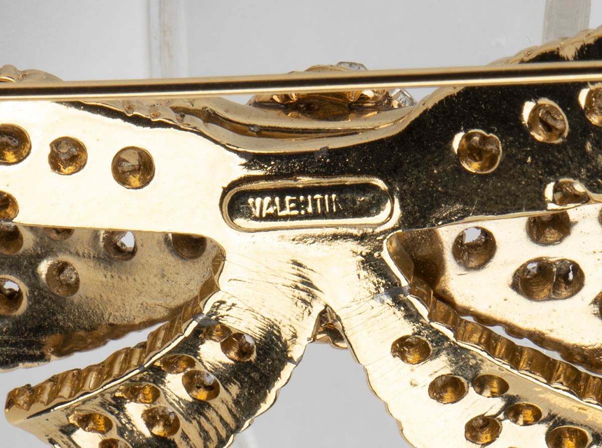 VALENTINO <br>SPILLA IN METALLO DORATO E STRASS<br>Fine anni 80