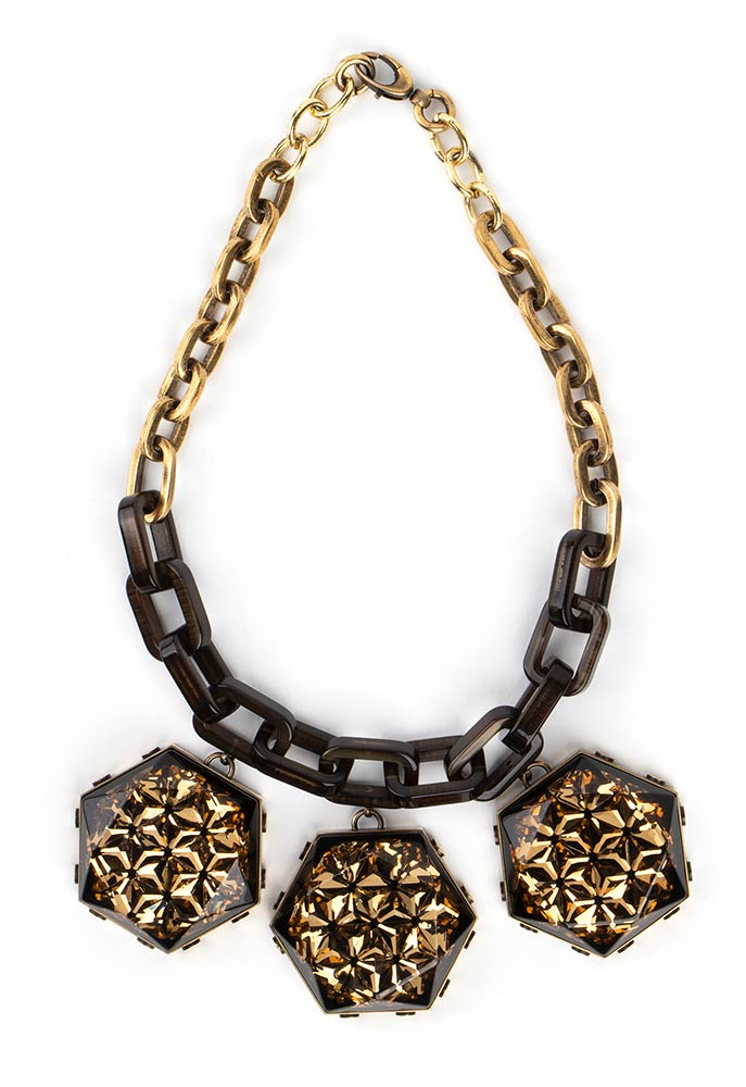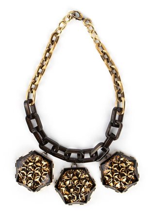Collana in metallo dorato, resina ed elementi in plastica