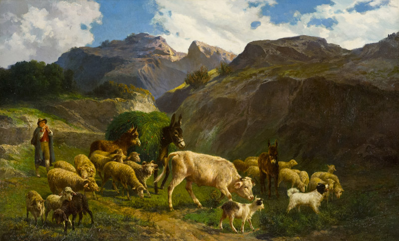 Filippo Palizzi Pastore con armenti Olio su tela, cm. 57x93 Firmato in basso a destra. Bibliografia: "La raccolta Carlo Sacchi", Galleria Pesaro, Milano, tav. XCI, n° 106.