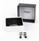 Orecchini logo in metallo argentato ed elemento sfaccettato nero in resina, Scatola e custodia originali