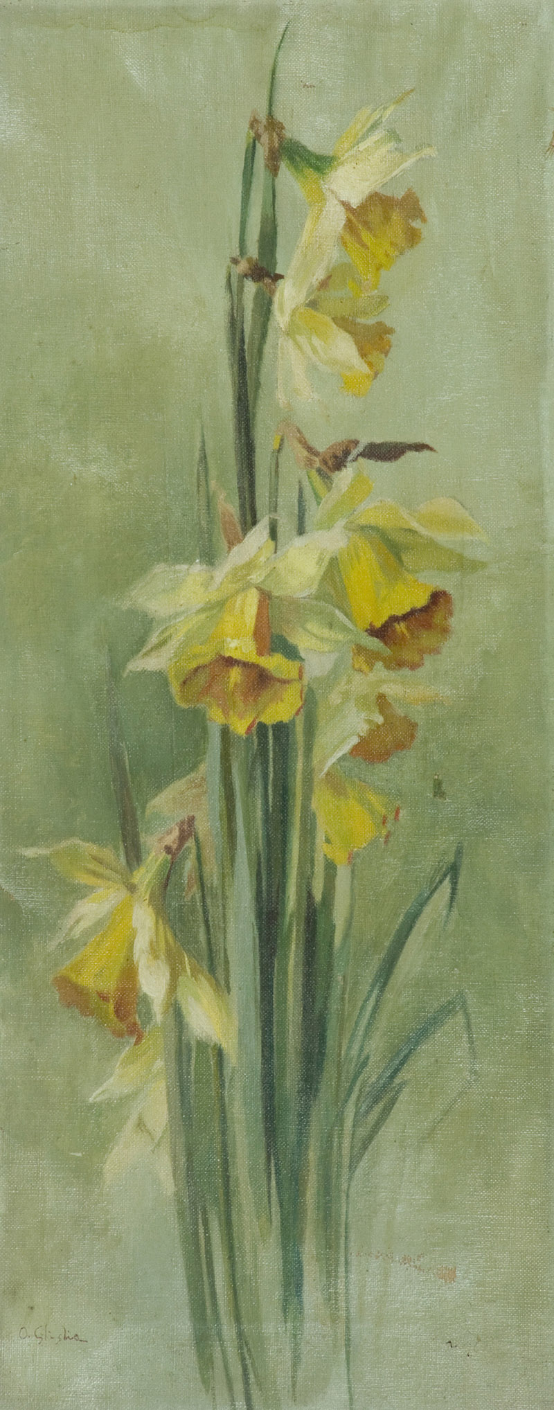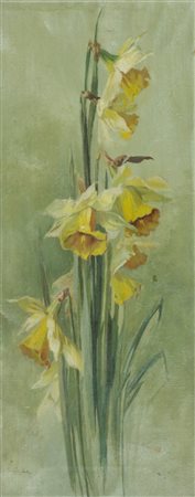 Ghiglia Oscar (Attribuito) Fiori Olio su tela, cm. 54x22 La tela presenta lievi imperfezioni. Firmato in basso a sinistra.