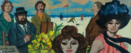 Fausto Maria Liberatore Marina con figure Olio su tela, cm. 21,5x50 Firmato in basso a destra. Autentica dell'Artista su foto.