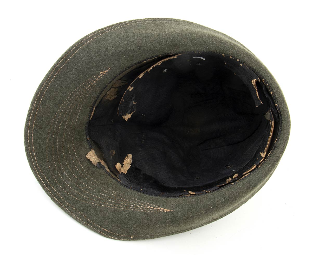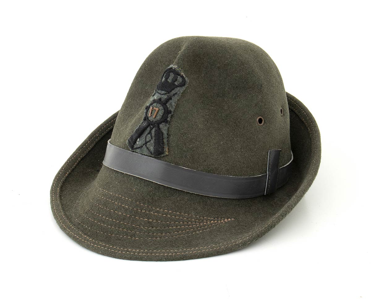 In feltro con cuciture sulla visiera, fregio di fanteria in filo nero caricato del numero 17, in ottimo stato.