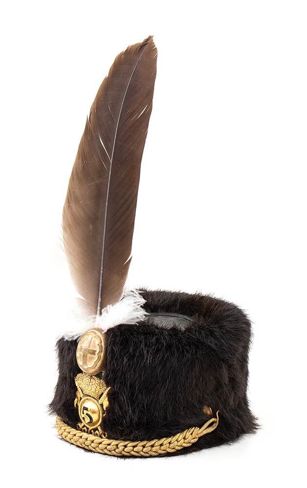 Cavalleggeri di Saluzzo, fusto rigido foderato di pelo con accessori in metallo dorato, in ottimo stato
