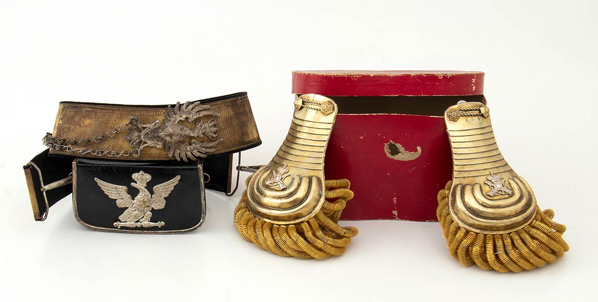 Italia, Regno, secondo quarto XX sec, Spalline a frangia e bandoliera da ufficiale di artiglieria