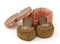 Ricamate in canottiglia su panno rosso, frange in grovigliola, conservate in scatola