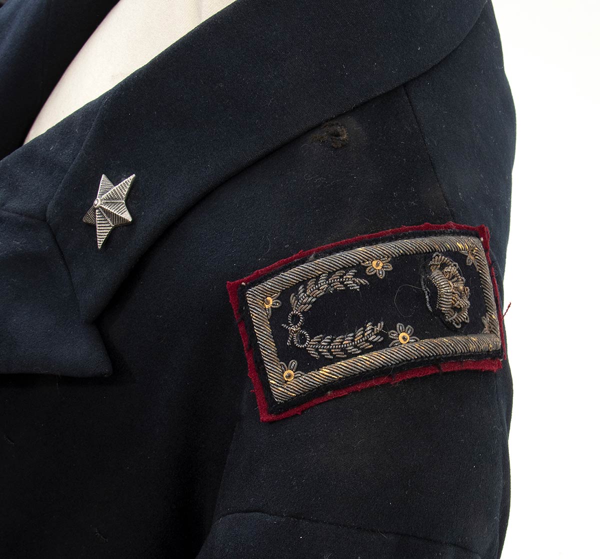 Per un tenente generale del Corpo di Commissariato della Regia Marina, abito di alta uniforme in castorino di lana, gradi alle maniche profilati di amaranto, travette specifiche del servizio, in buono stato 800