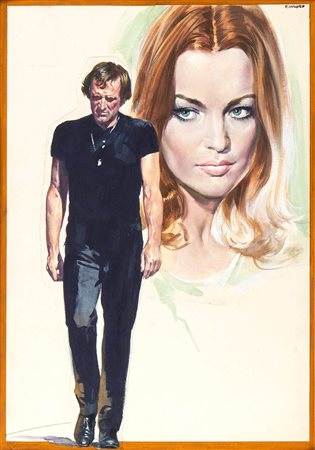 Bozzetto originale, dipinto da Renato Casaro, firmato in alto a destra, per il film UN UOMO IN VENDITA del 1971. Olio su cartoncino. Dimensioni cm. 55x40 . Film per la regia di Richard Harris e Uri Zohar, tra gli attori lo stesso Richard Harris ed una giovane Romy Schneider.