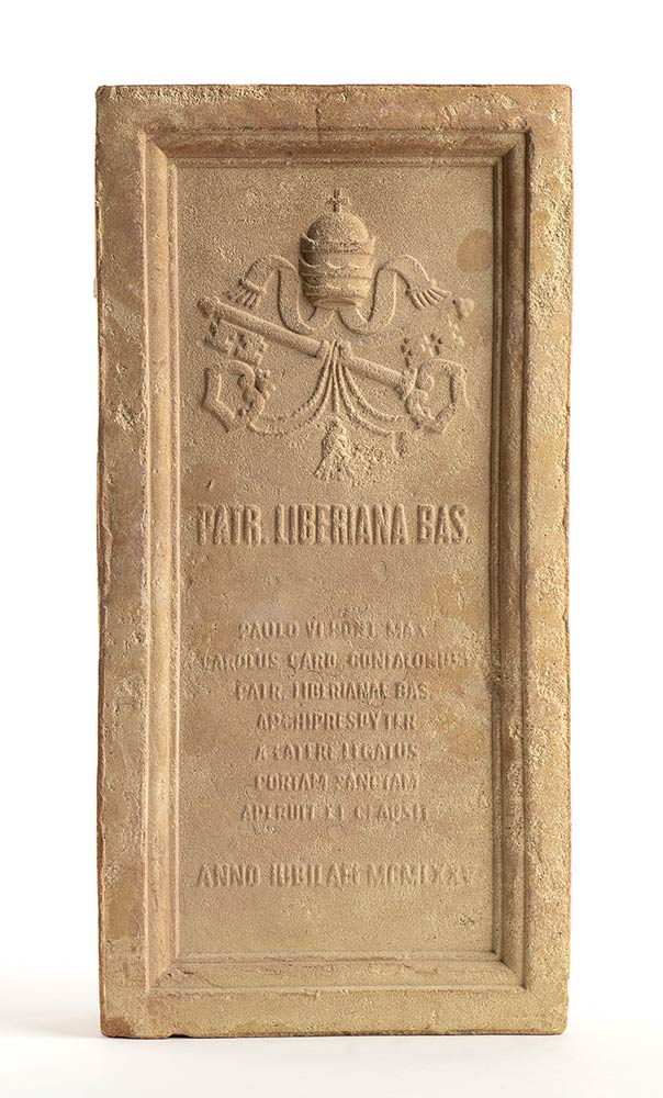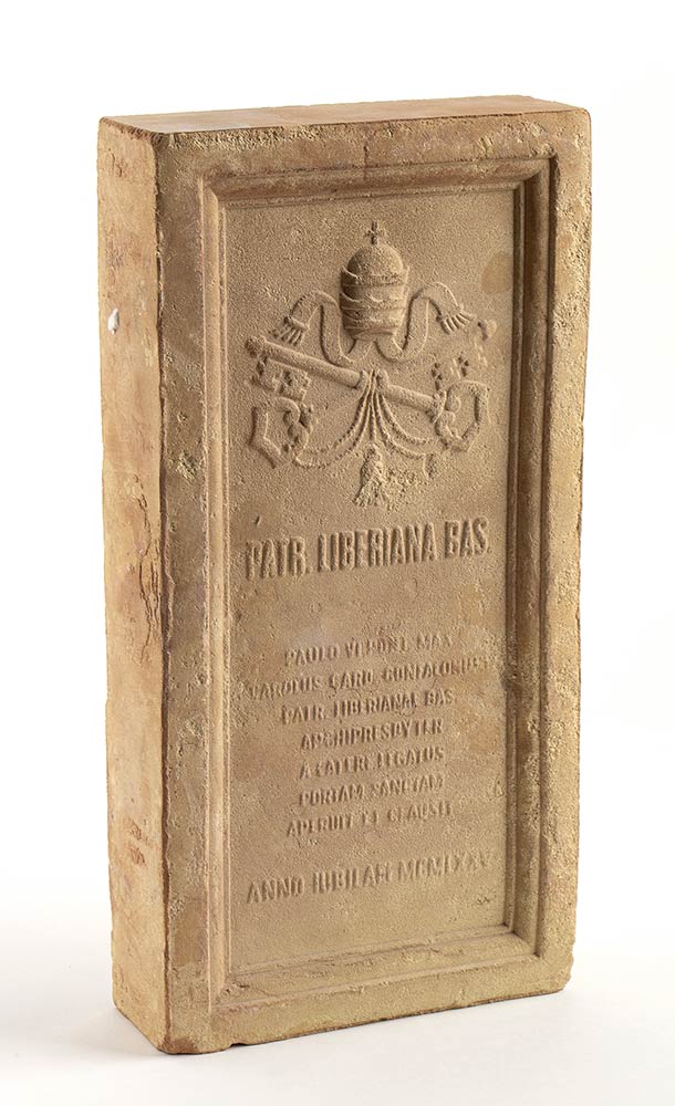 Mattone in terracotta preparato per essere usato nel Giubileo Episcopale del 1975 da Papa PAOLO VI per chiudere la Porta Santa della Basilica di San Pietro, Vaticano