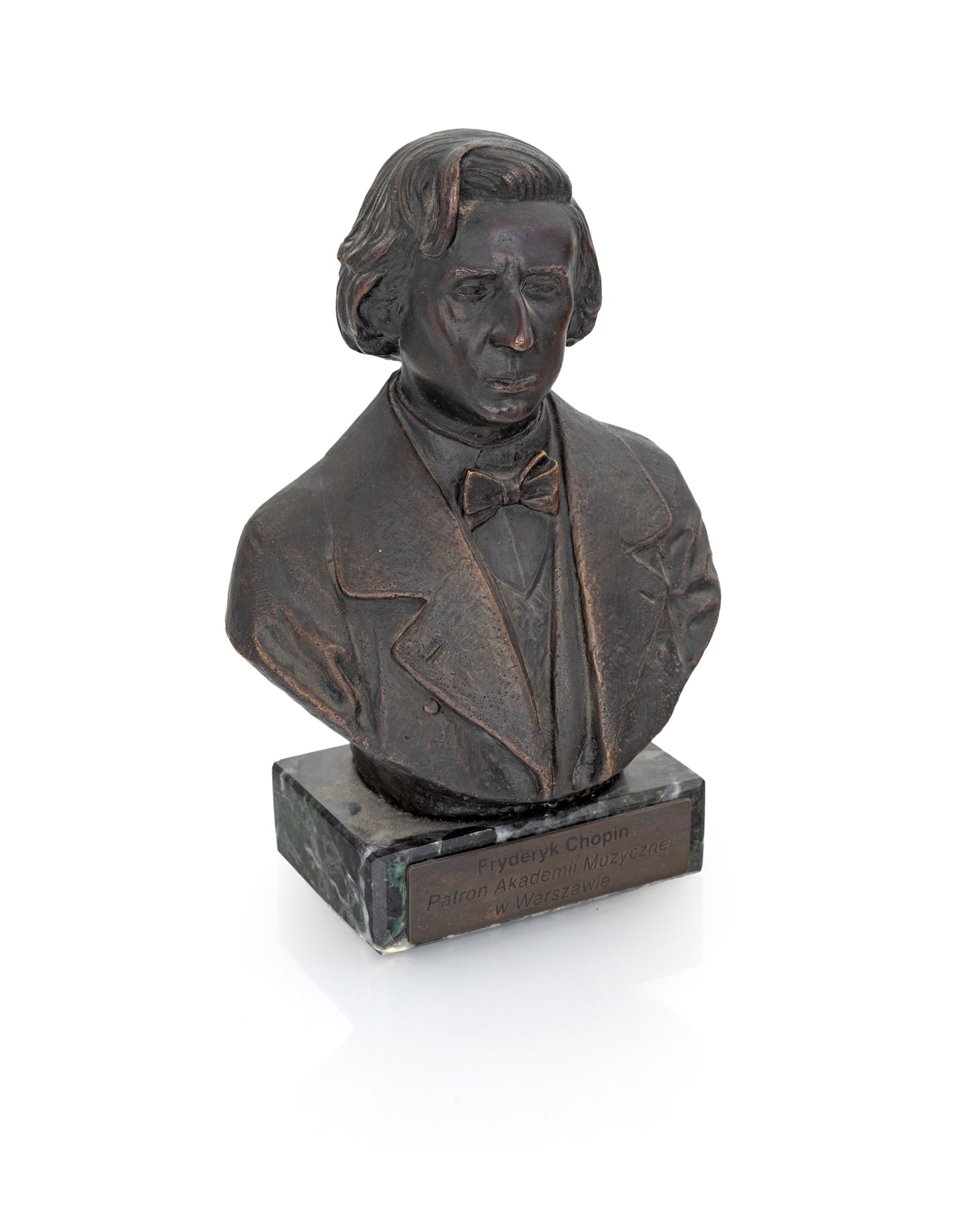 Precedente Lotto 65 Successivo Casa d'Aste Arcadia - Corso Vittorio Emanuele II 18, 00186 Roma Mobili, Arredi, Dipinti Antichi e del XIX Secolo I Sessione mercoledì 13 maggio 2020 ore 16:00 (UTC +01:00) Busto di Fryderyk Chopin Busto di Fryderyk Chopin bronzo altezza cm 20