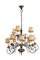 Lampadario in ottone stile olandese a dodici luci con bracci incurvati disposti su tre livelli intorno al balaustro centrale. XIX secolo altezza cm 70 esclusa la catena; diametro cm 70