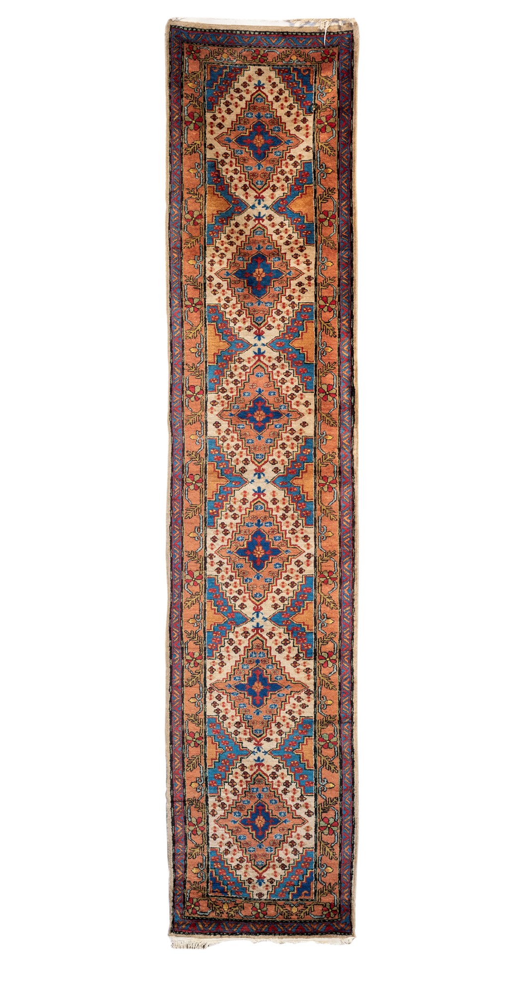 Corsia con sei losanghe in tonalità vivaci su fondo chiaro. cm 70x335