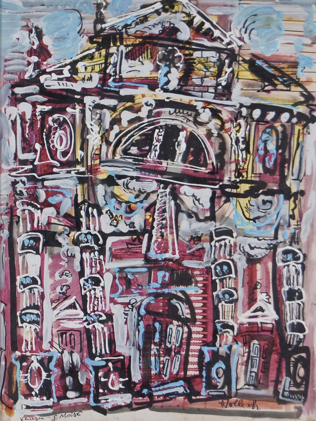 HOLLESCH CARLO Pola 1926 - Venezia 1977 Chiesa di S. Moisè 1968 tecnica mista su carta 31,5x24 cm firma in basso a destra titolo in basso a sinistra firma data e titolo al retro esposizioni Arte Contemporanea Zelarino - timbro al retro