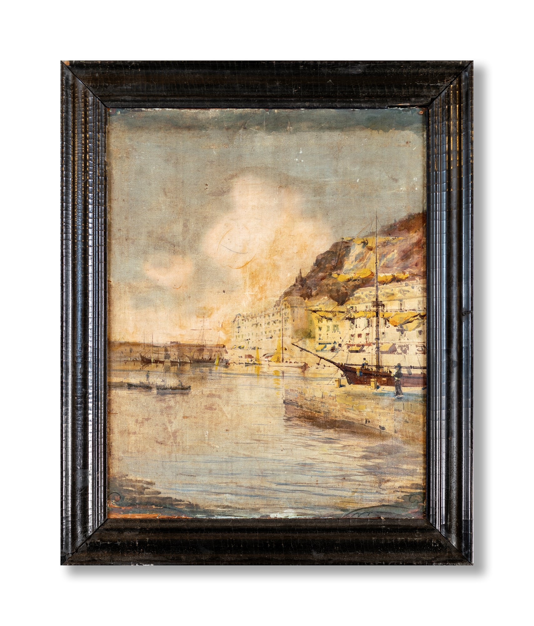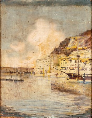Pittore della fine del XIX secolo Il porto antico di Montecarlo olio su tavola cm 49x38