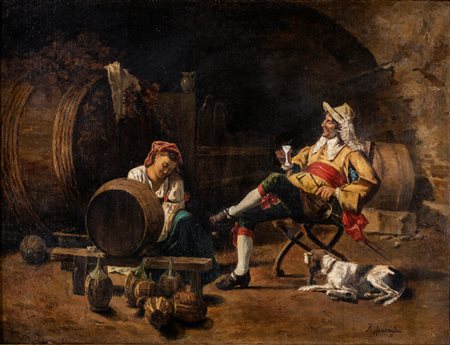 Raffaele Armenise Bari 1852-Malgrate 1925 In cantina Firmato in basso a destra: R. Armenise. olio su tela cm 60x80