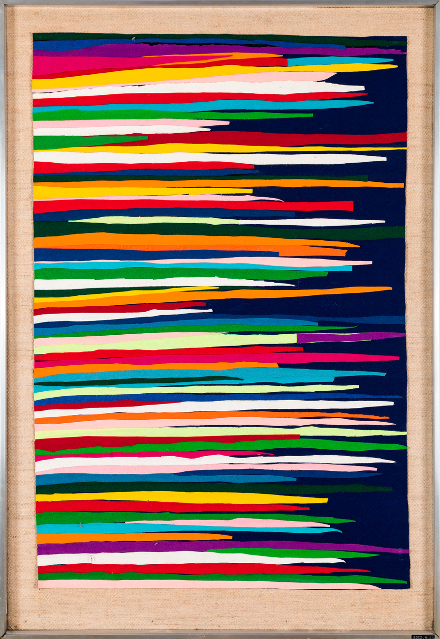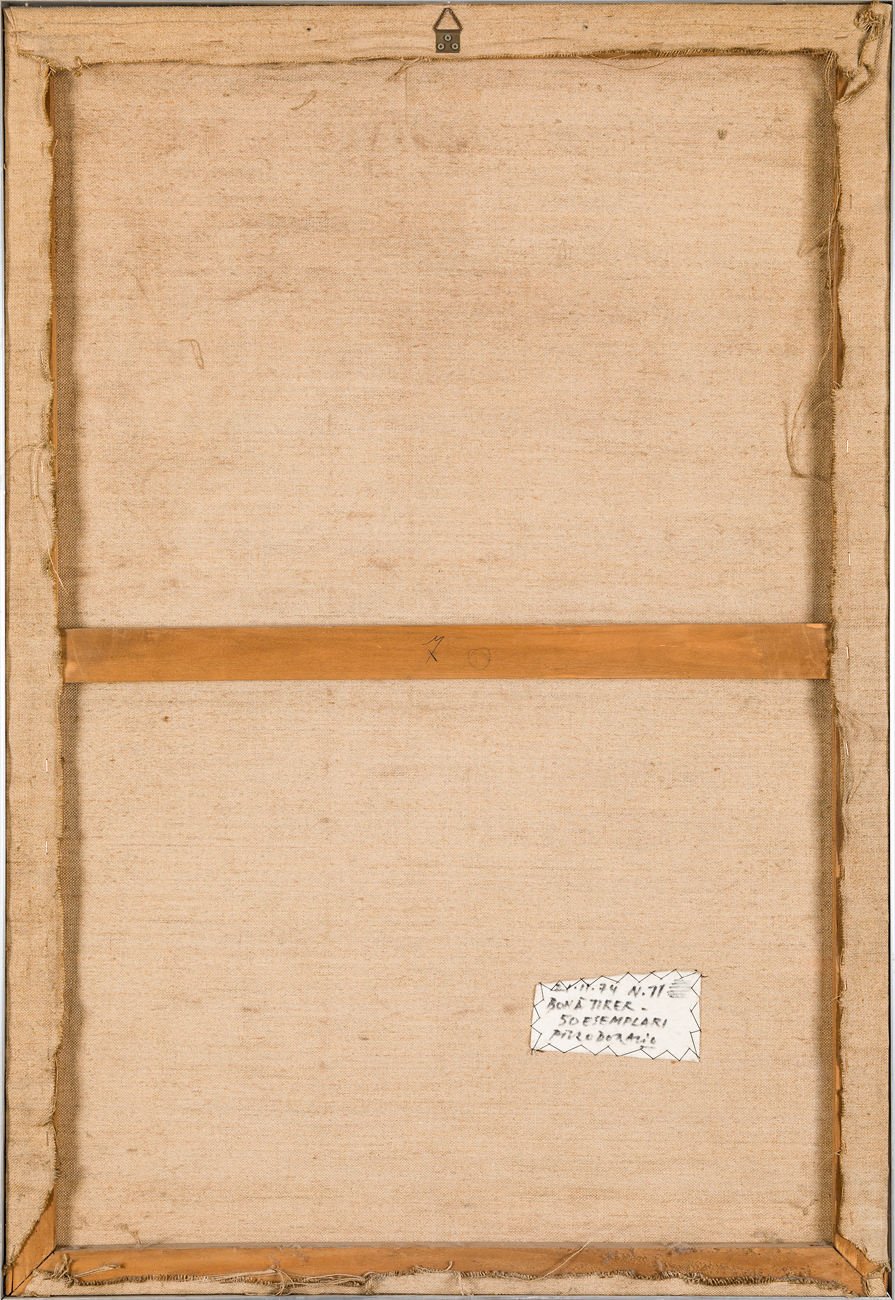 Etichetta ricamata al retro con firma, datazione e iscrizione 'Bon à tirer - 50 esemplari' in pennarello
