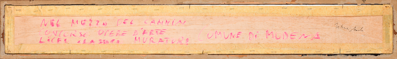 Iscrizione "Nel mezzo del cammin, concorso opere d'arte, Liceo Classico Muratori, Comune di Modena" al retro