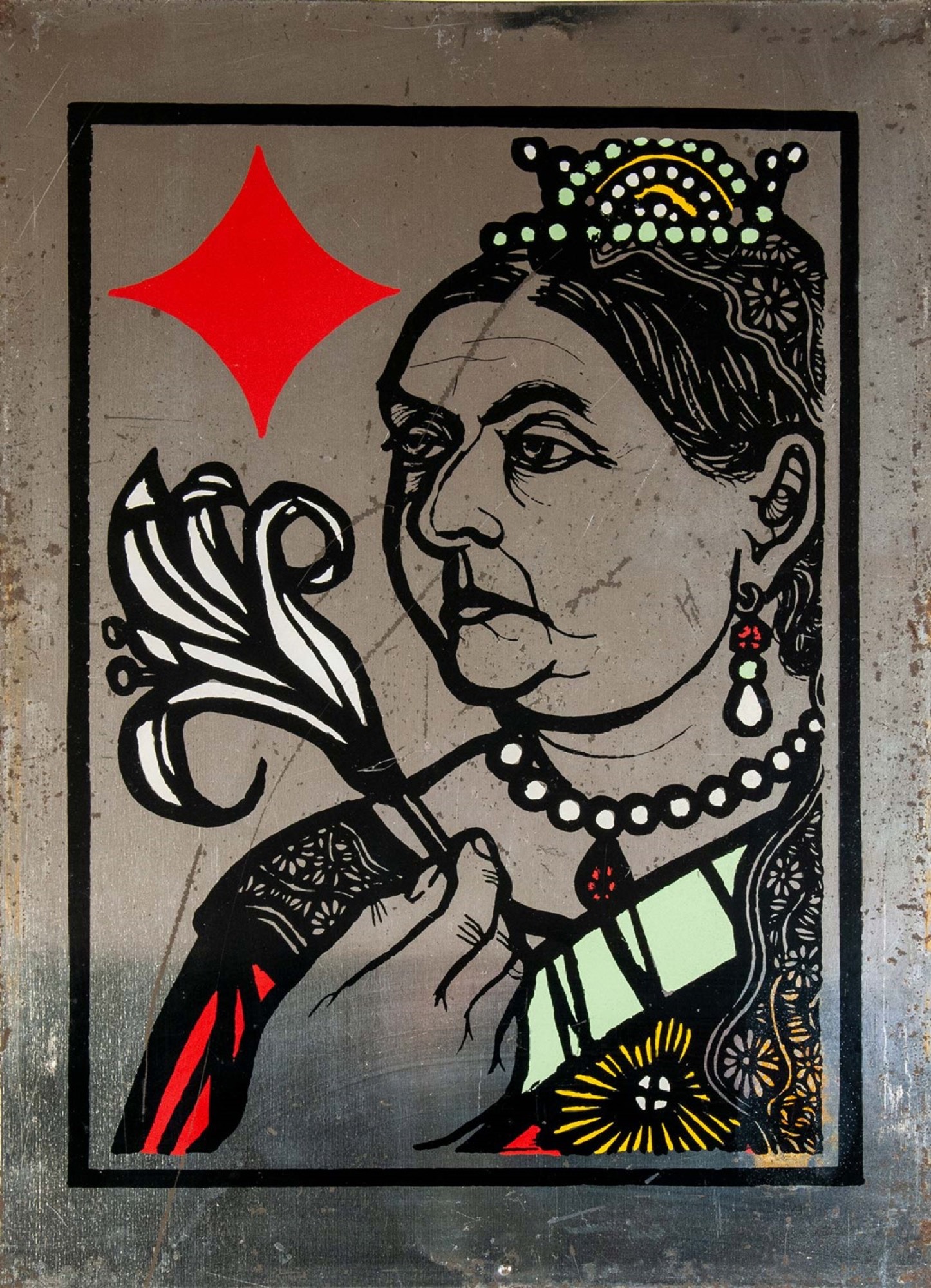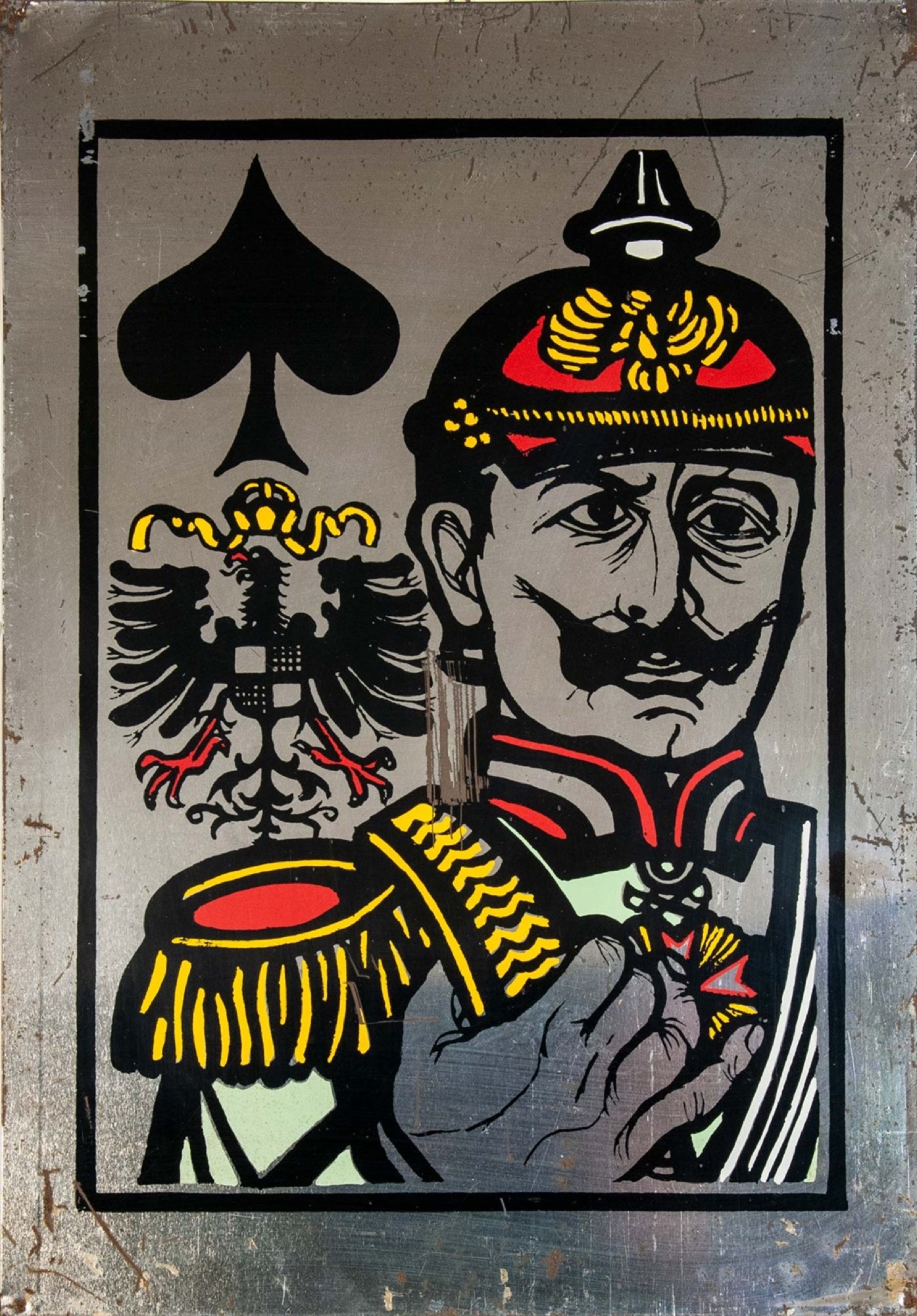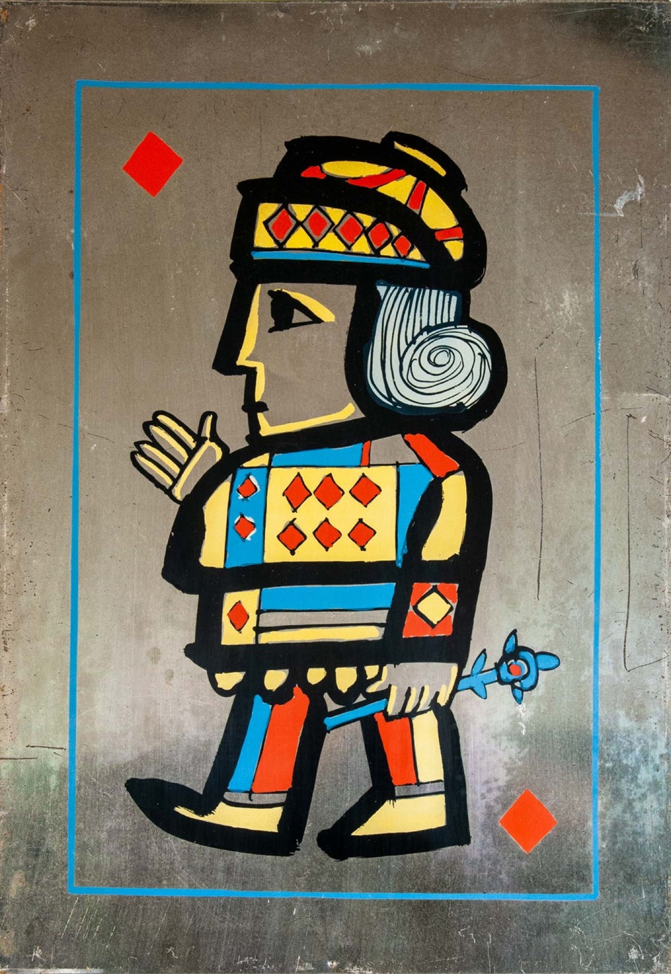 11 carte da gioco stampate in serigrafia a colori su lastra di metallo argentato