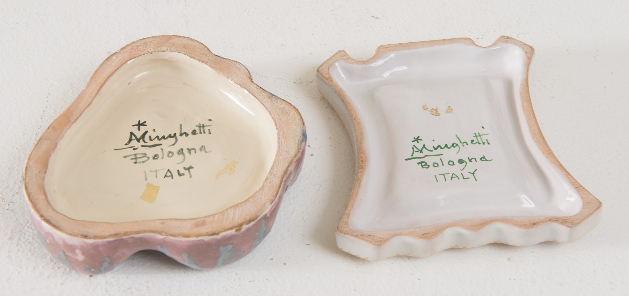 A. MINGHETTI, XX secolo. Coppia di posaceneri in ceramica smaltata, a firma...