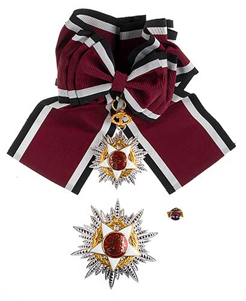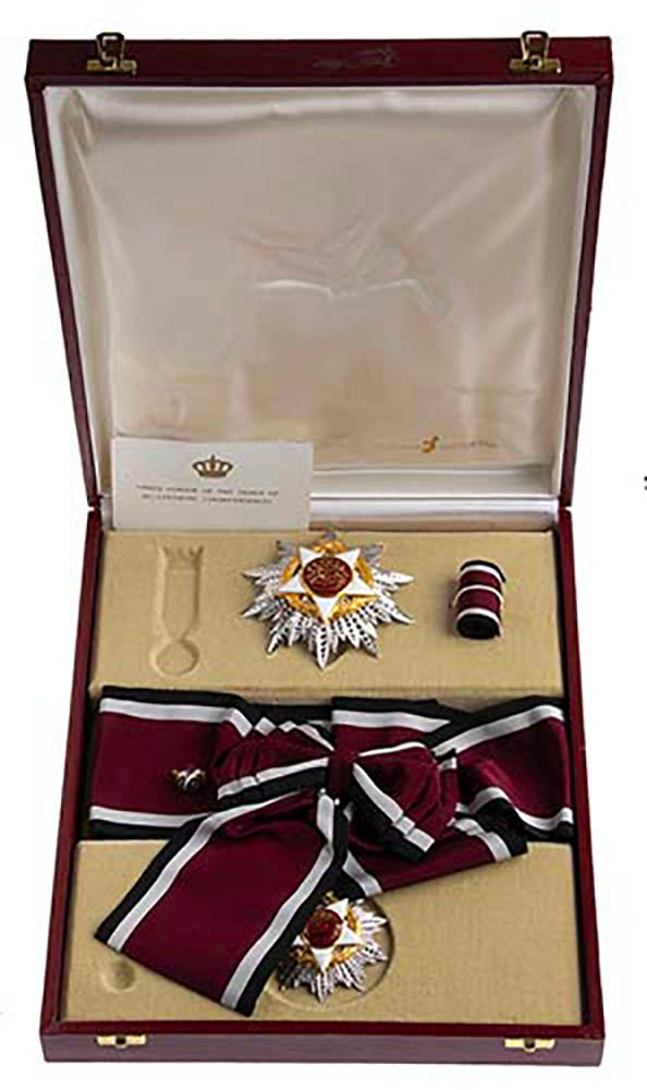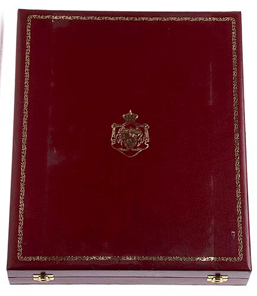 GIORDANIA, ORDINE DELL’INDIPENDENZA, INSEGNA DI GRAN CROCE, PLACCA E PENDENTE CON FASCIA, OTTIMA FATTURA, HUGUENIN, SWITZERLAND, CONSERVATA IN IMPONENTE ASTUCCIO