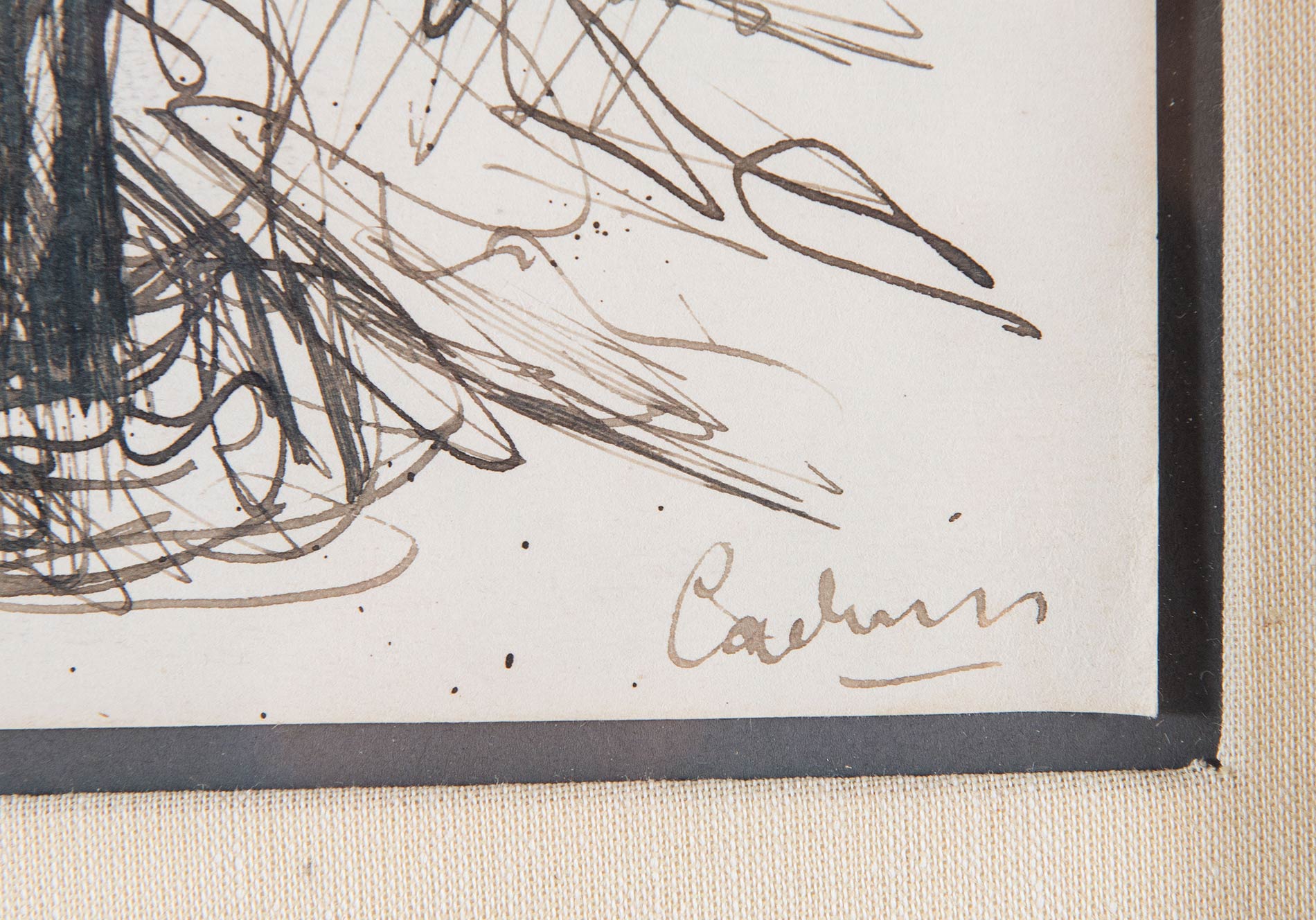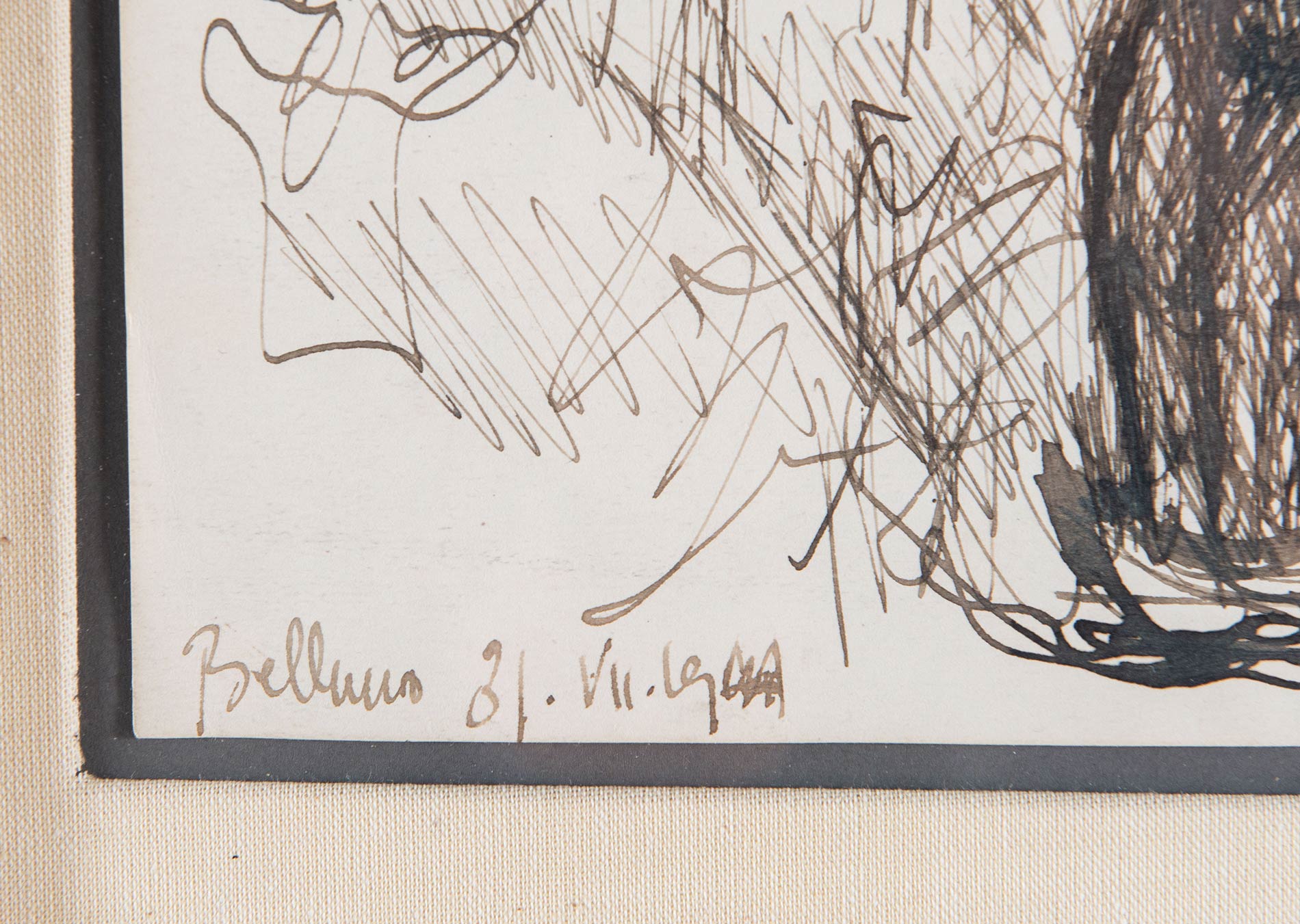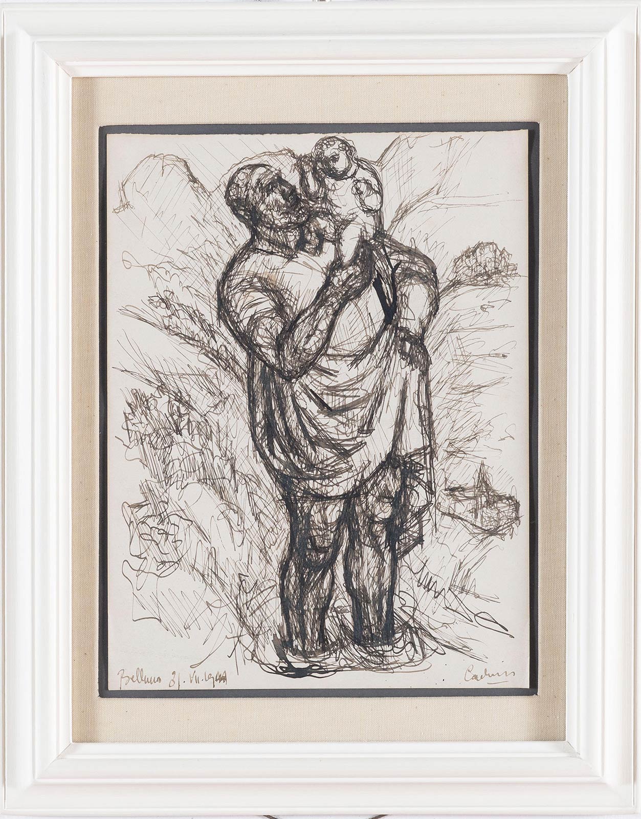 Guido Cadorin (Venezia 1892 - 1976), “Figura maschile con bambino”, 1944. China su carta, firmato in basso a destra Cadorin, datato in basso a sinistra Belluno 31.VII.1944, H cm 32.2x24.2