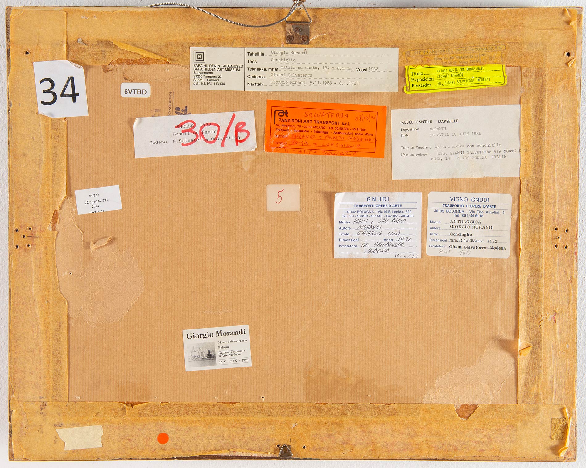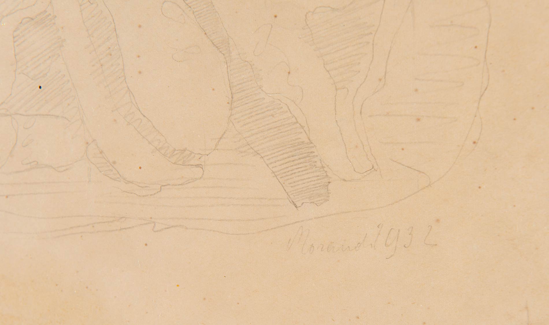 Giorgio Morandi (Bologna 1890 -1964), “Conchiglie”, 1932. Matita su carta, firmato e datato in basso a destra Morandi 1932, H cm 18.4x25.8 Al retro reca etichette: Collezione Salvaterra – Modena, Sara Hildenin Taidemuseo – Tampere (Finlandia), Musée Cantini – Marseille (Francia), Giorgio Morandi – Mostra del Centenario Bologna Galleria Comunale d’Arte Moderna ed altre etichette per trasporto. Provenienza: Collezione Salvaterra – Modena. Esposizioni: Reggio Emilia – 1966, Lugano – 1977, Madrid-Barcellona-Marsiglia – 1984/85 n.89, Milano-Bologna – 1985/86 n.28, Parigi – 1987 n.66, Tampere – 1988 n.91, Leningrado-Mosca – 1989 n.89, Londra – 1989; Locarno – 1989 n.89; Tubingen-Dusseldorf – 1989-90 n.160; Bologna 1990. Bibliografia di riferimento: ‘Giorgio Morandi – Mostra del Centenario’ Bologna – Galleria Comunale d’Arte Moderna, Electa – Milano 1990 - n. 208, p. 276.