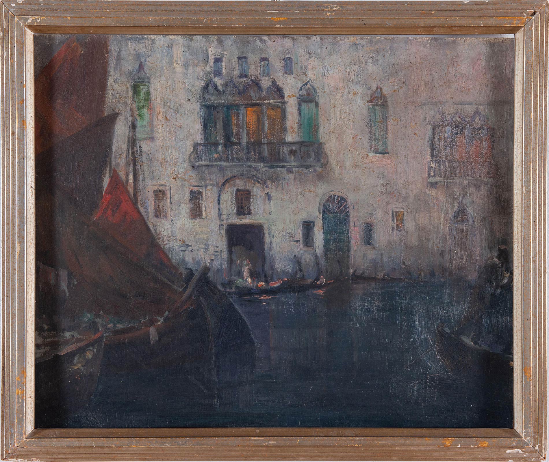 Gennaro Favai (Venezia1879 - 1958), “Canale Veneziano”. Olio su compensato, firmato e titolato al retro ‘G Favai Canale Veneziano’, H cm 50x60 Parere favorevole del Dott. Giovanni Soccol, curatore del catalogo ‘Gennaro Favai – visioni e orizzonti 1879-1958’.