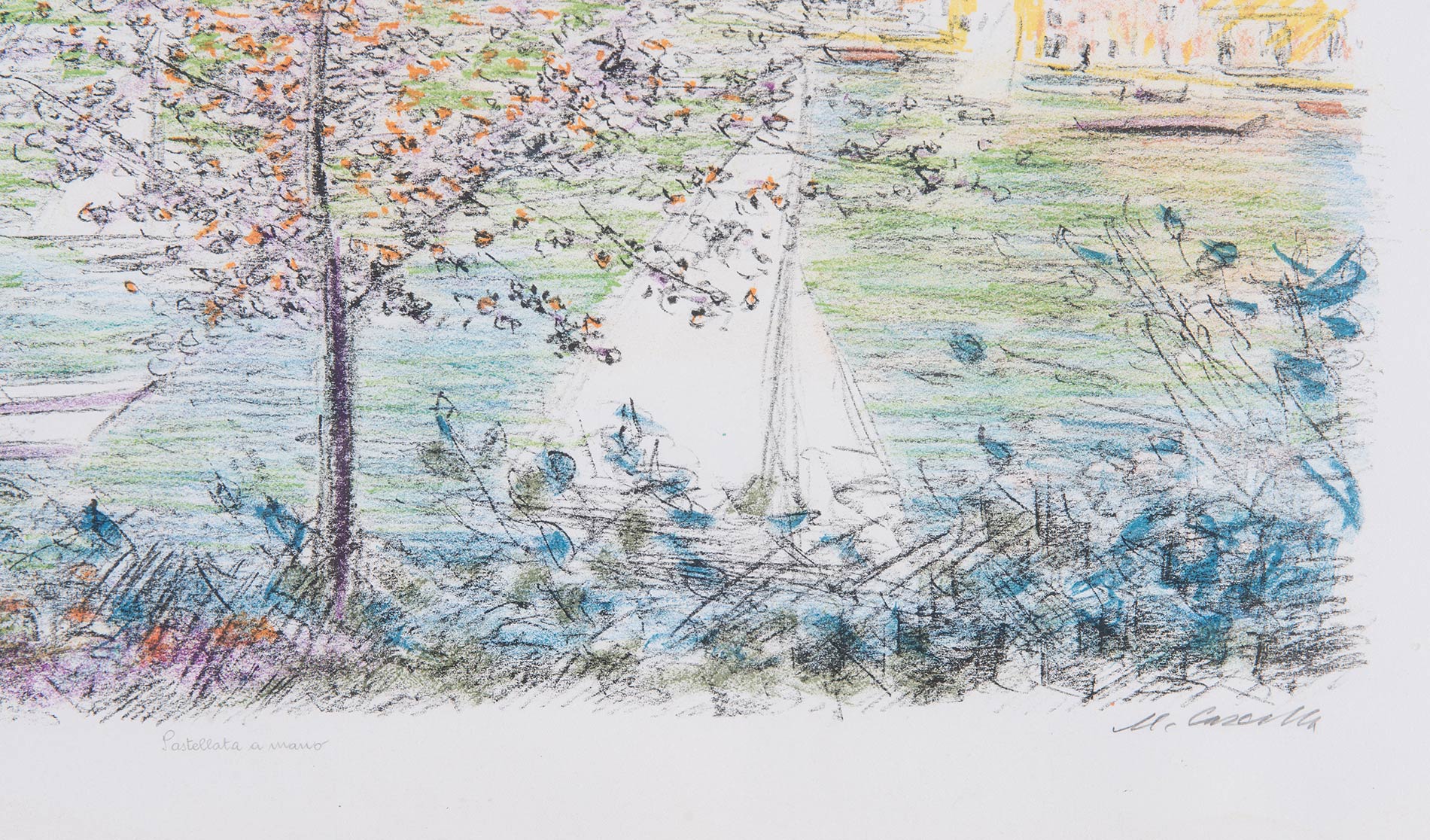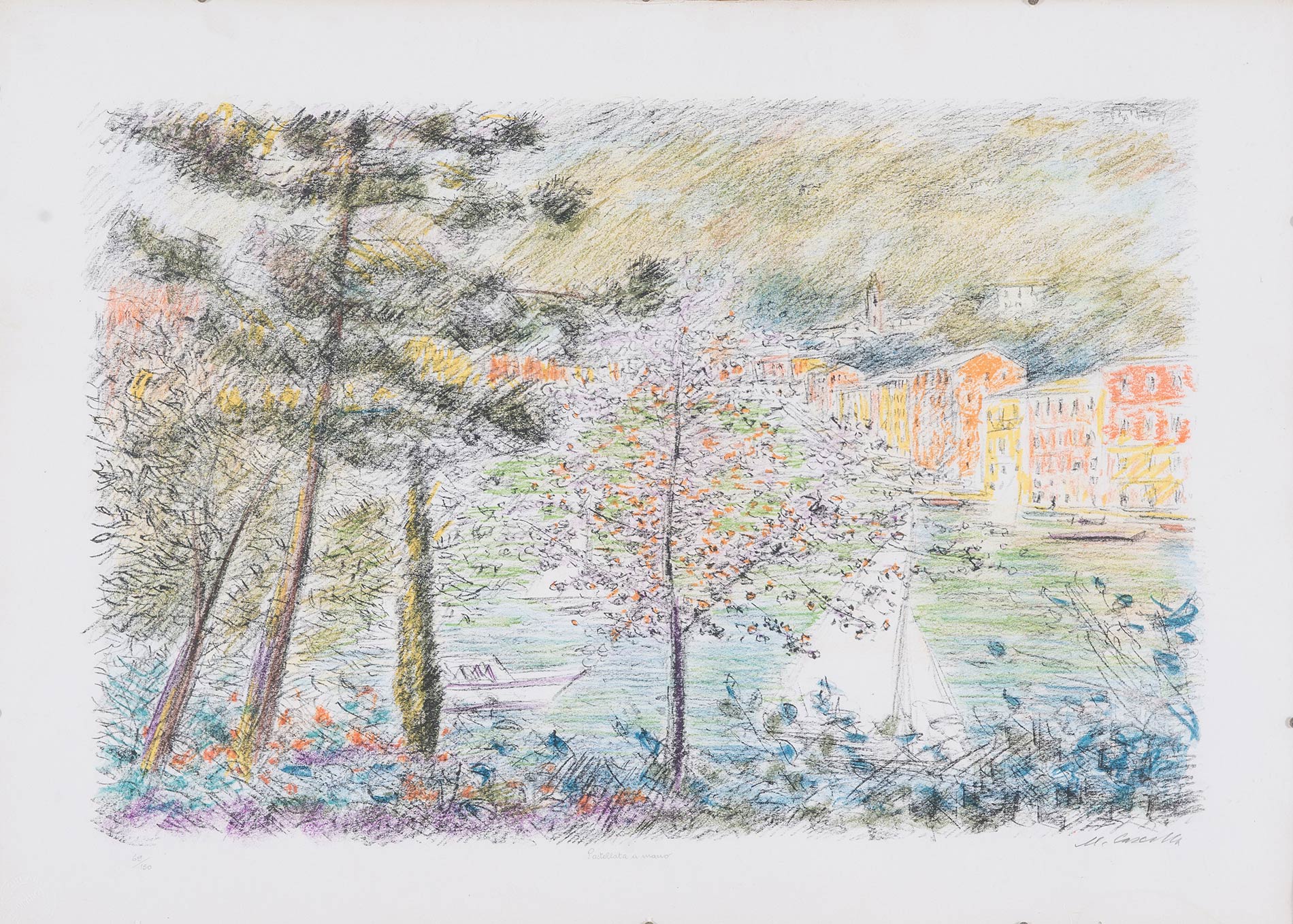 Michele Cascella (Ortona 1892 - Milano 1989), “Viale alberato”. Serigrafia pastellata a mano, firmata in basso a destra M. Cascella, numero di tiratura in basso a sinistra 69/150, in basso al centro ‘pastellata a mano’, Lastra cm 40x60