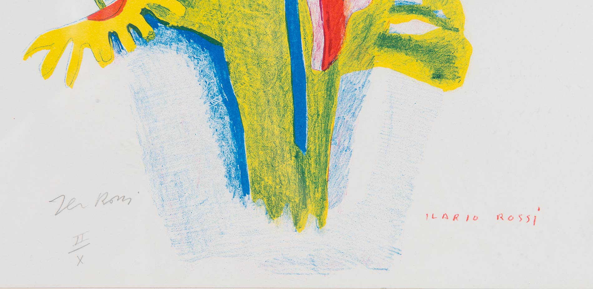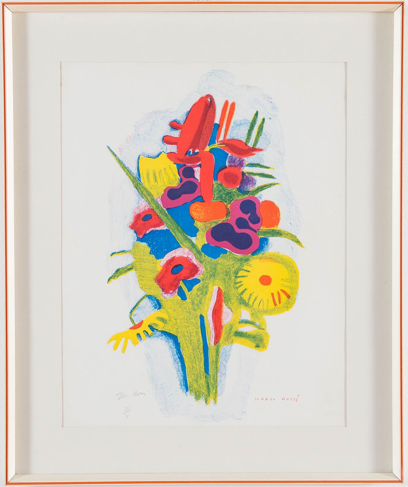 Ilario Rossi (Bologna 1911 - 1994), “Mazzo di fiori”. Litografia a colori su carta, numero di tiratura e firma in basso a sinistra Ilario Rossi II/X, H cm 50x40