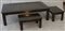 Set composto da tavolo basso e due sgabelli in legno laccato in nero, piano con