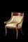 Poltrona in legno laccato rosso con fregi intagliati a foglie d'acanto, gambe a