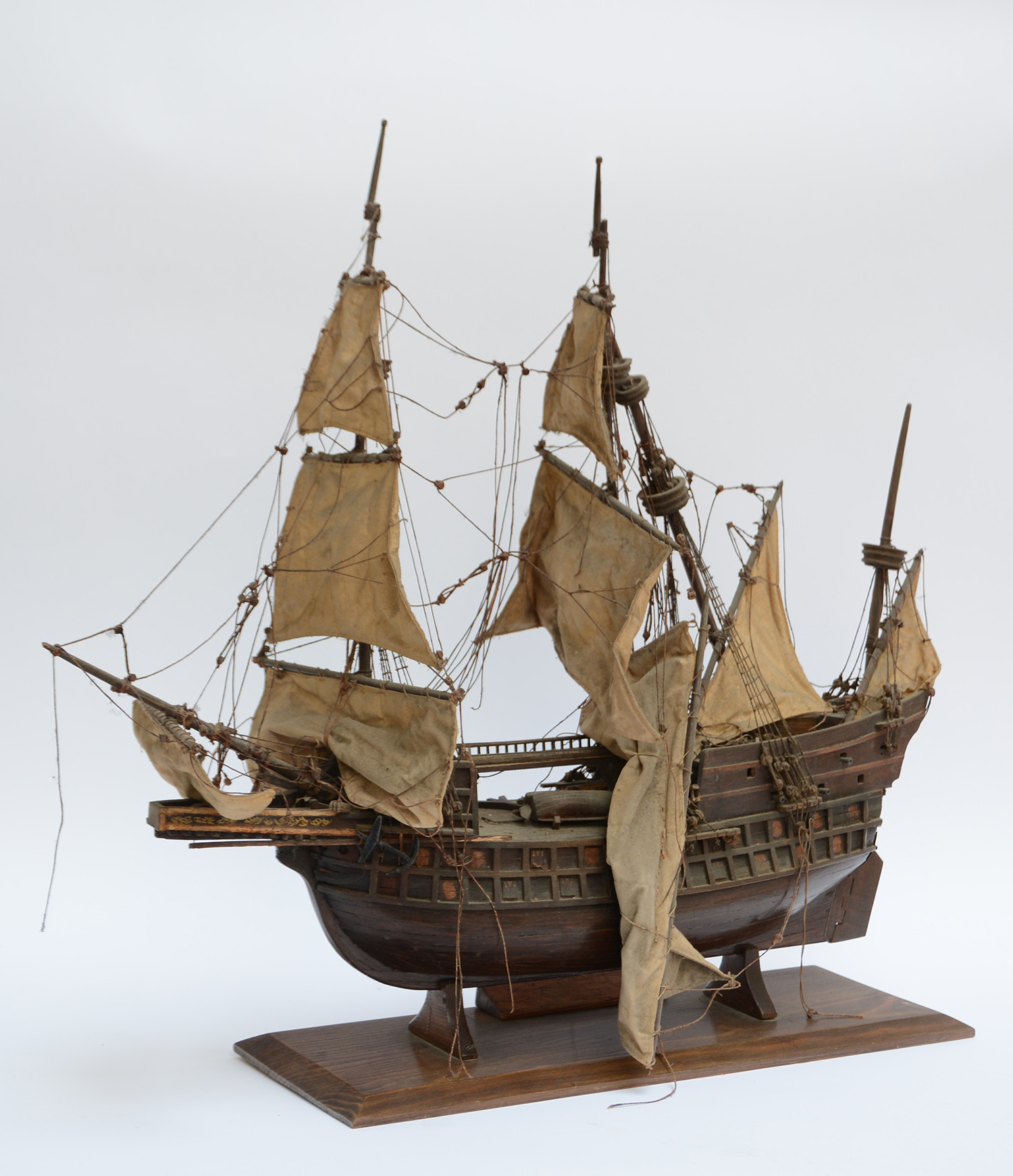 Modello di galeone a tre alberi con vele in stoffa (cm 70) (difetti)