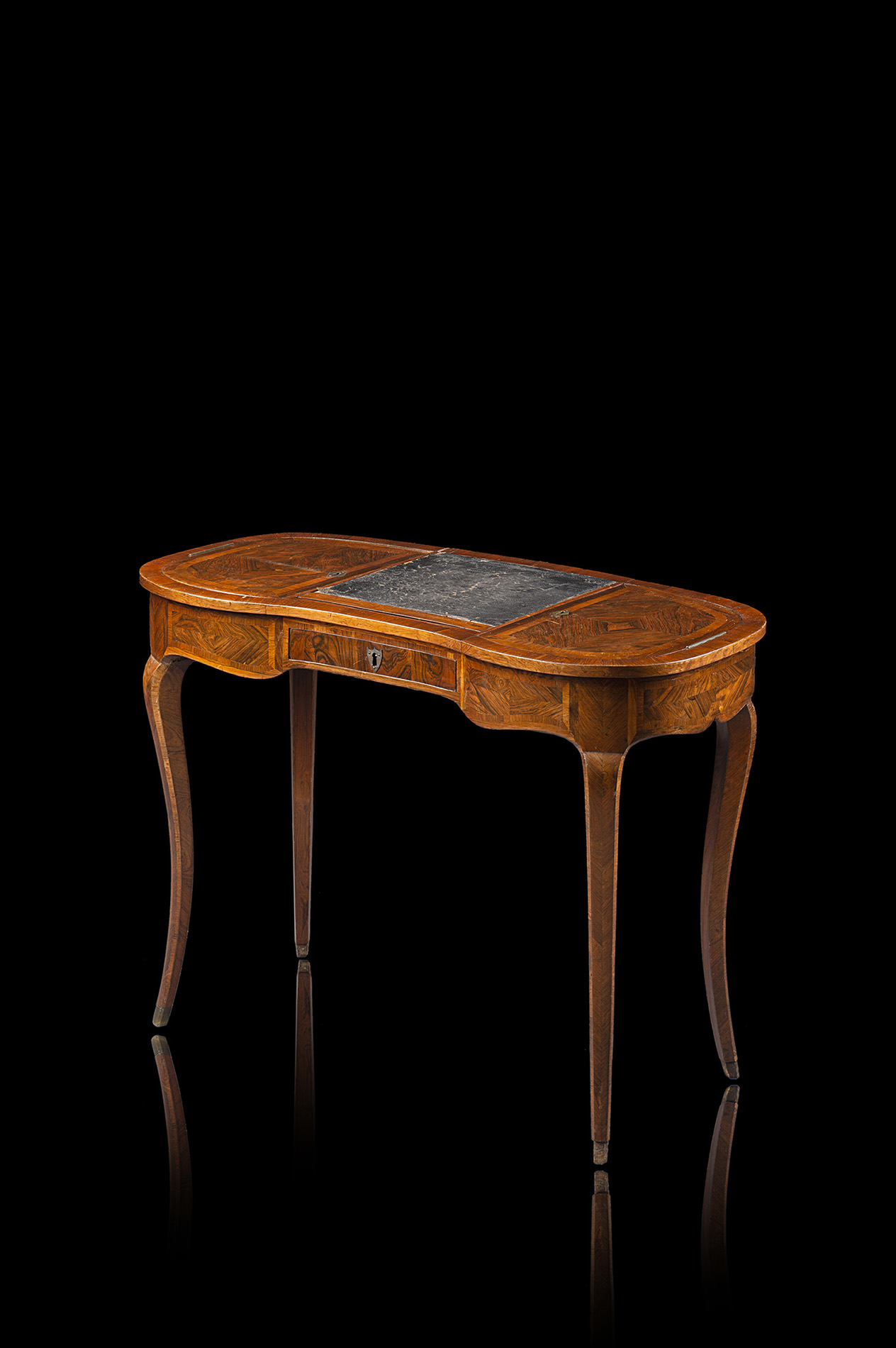 Mobile toilette a fagiolo lastronato in palissandro con pianetto apribile rives