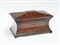 Tea box in mogano con all'interno due scatole e vaso in cristallo. Inghilterra,