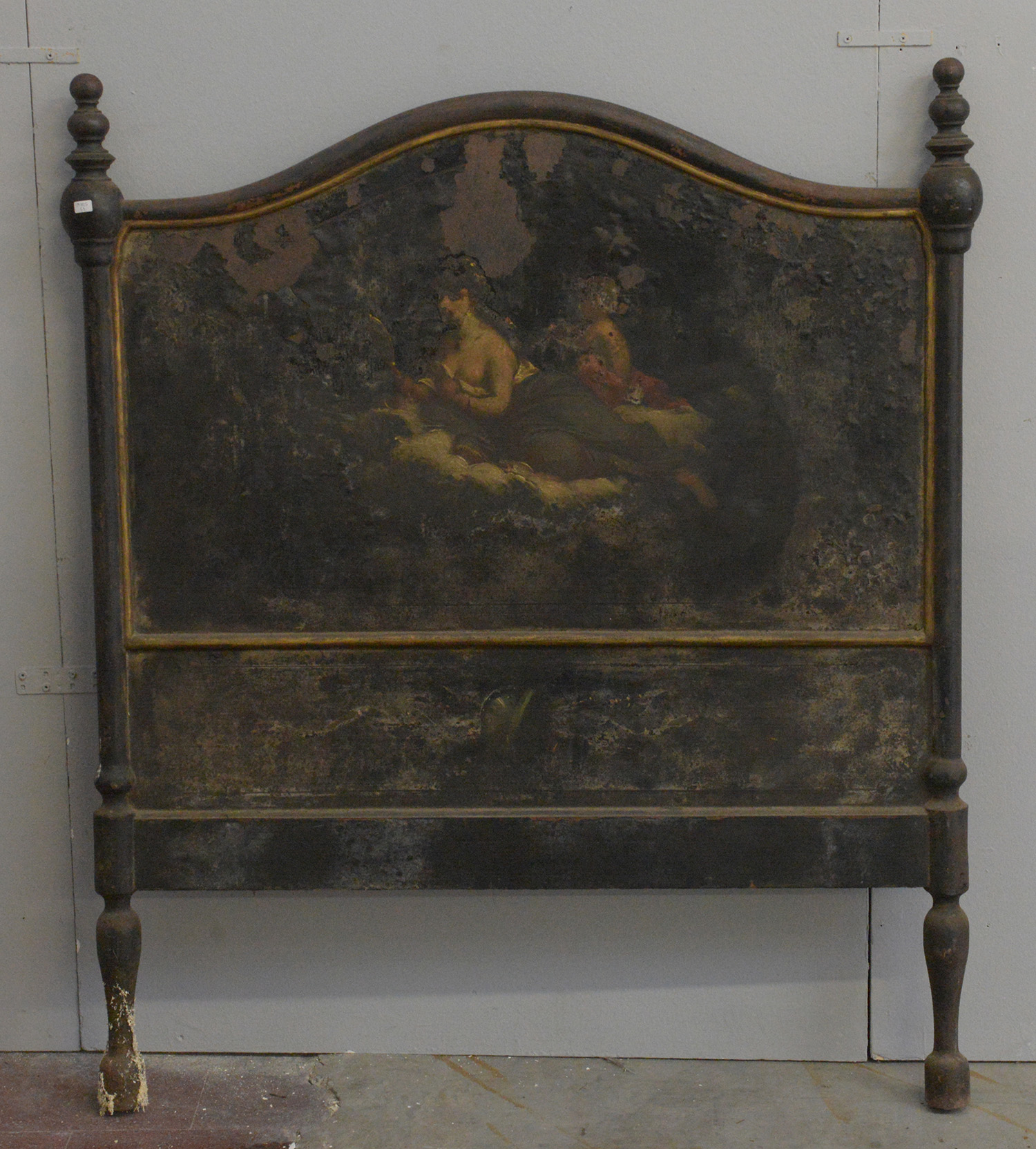 Pediera in ghisa con pannello dipinto a scena classica. Secolo XIX (cm 100x120) (difetti e restauri)