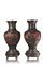 Coppia di vasi in lacca nera su fondo cinabro con decorazione floreale a intaglio