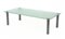 Tavolino da salotto con piano in vetro satinato e struttura in metallo argentato, piedini regolabili. Italia, anni duemila. (cm 144x41x72)