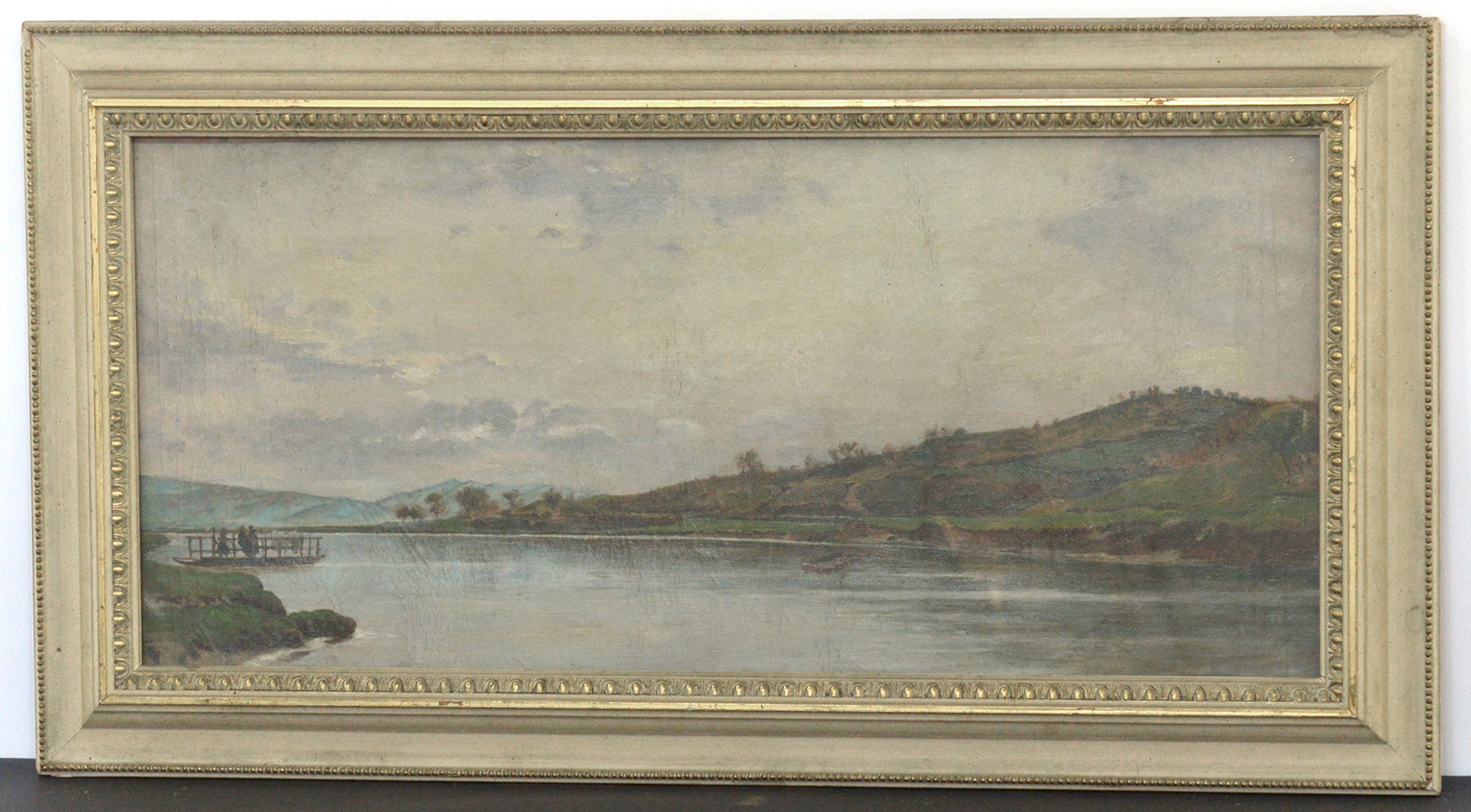 Ignoto del XIX Secolo "Il fiume Otranto" olio su tela (cm 29x64) Reca iscrizion