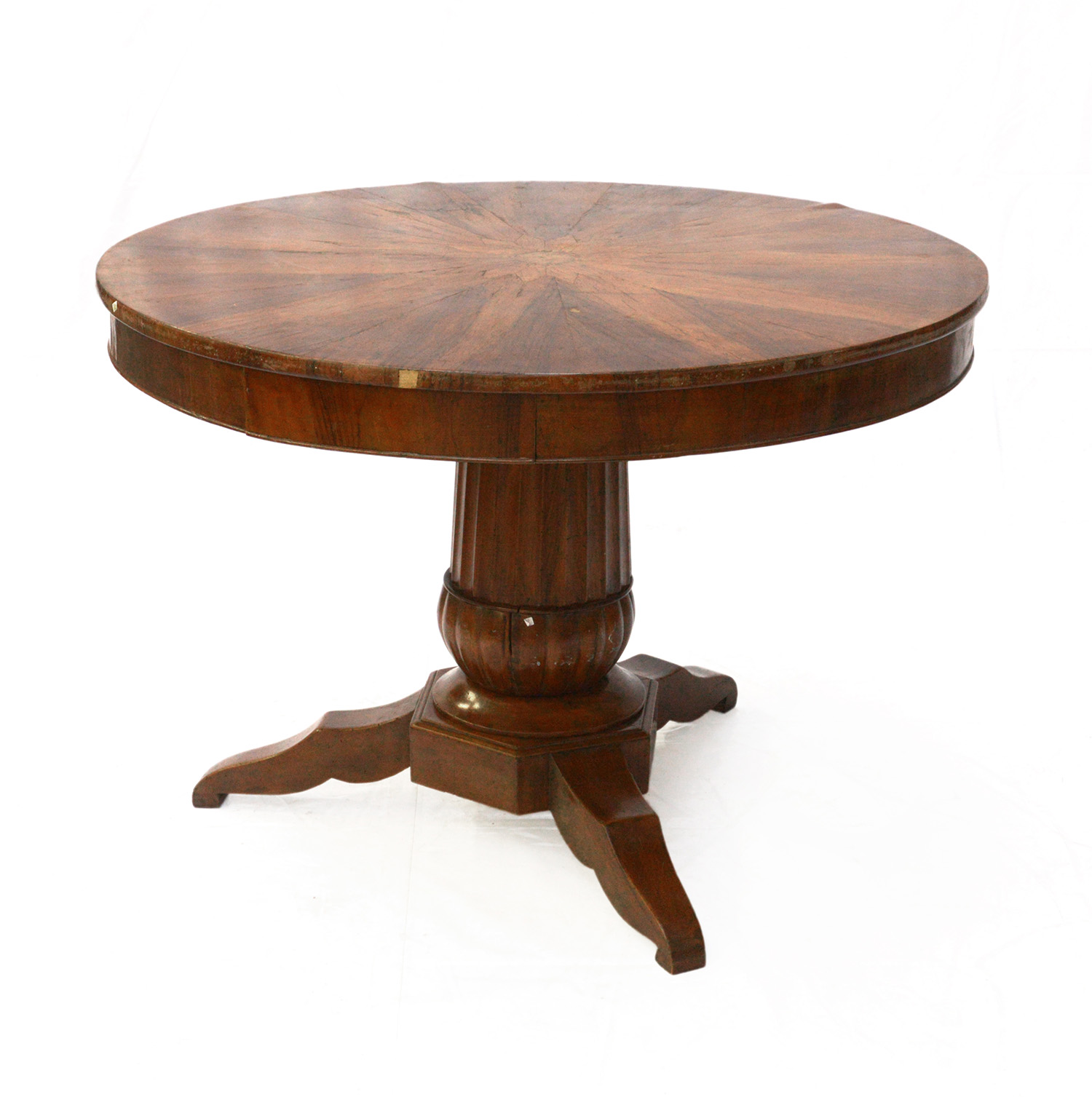 Tavolo tondo con fusto a colonna scanalata su base tripode, secolo XIX (d cm 112) (difetti e mancanze)