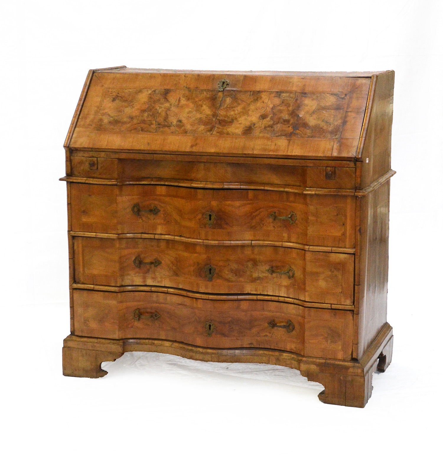 Ribalta con fronte mosso a tre cassetti ed anta celante vani, cassettini e segreto. Veneto, secolo XVIII (cm 110x110x57) (difetti e restauri)