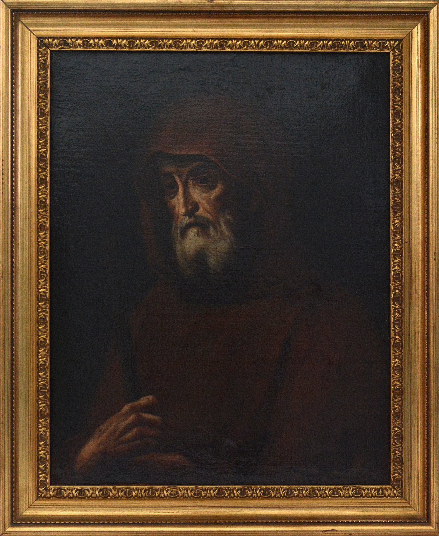 Ignoto "Ritratto di francescano" antico dipinto ad olio su tela (cm 62x49) In cornice (difetti e restauri)