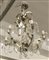 Lampadario a sette luci in metallo rivestito in vetro e decorato a pendagli (h.