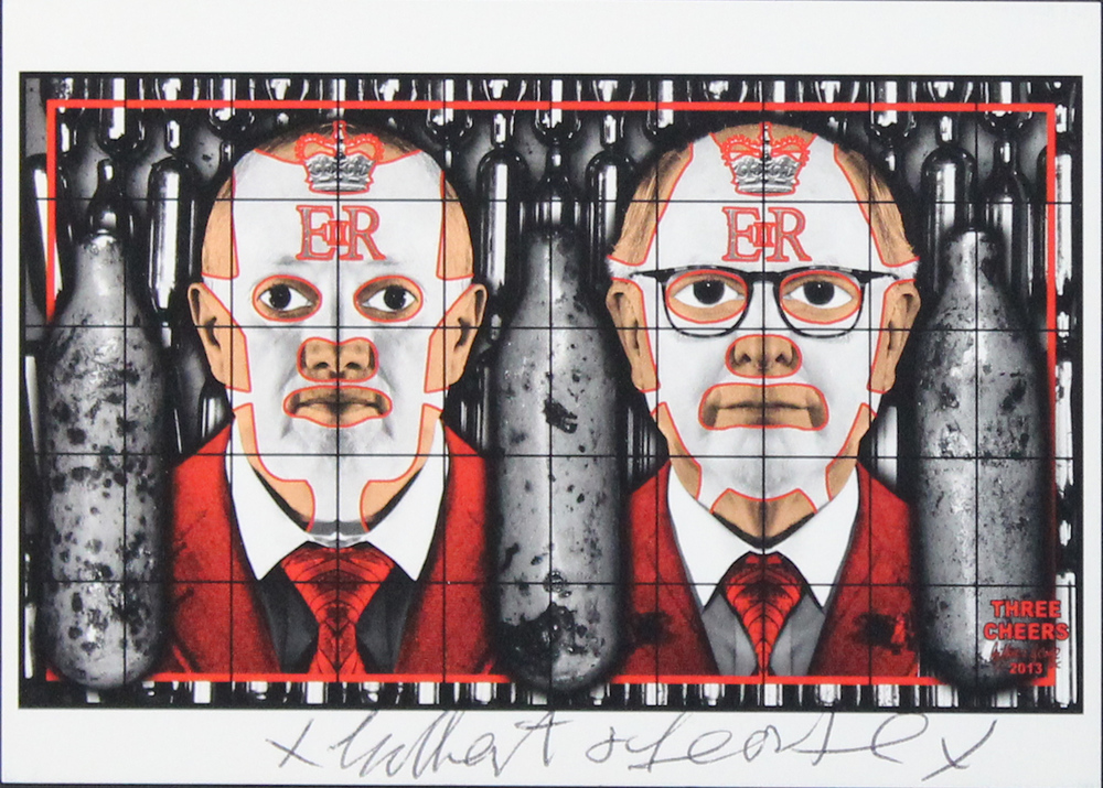 GILBERT & GEORGE Three Cheers Cartolina firmata Anno 2013 Dim. 10x14,5...